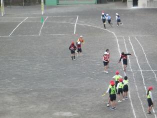 1組は長なわを、2組は鉄棒を、3組は鬼遊びをしていました。