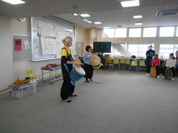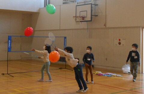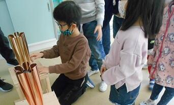 音楽に合わせて2人で体を動かします。すごいジャンプ!