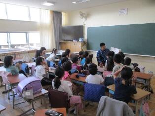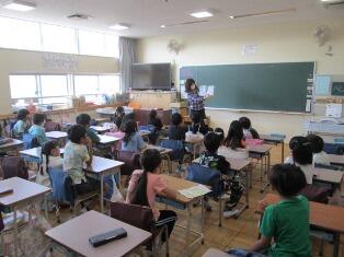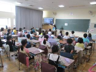 本日(6月5日(水))本校で2つの部会の授業を行ないました。2年2組では学校図書館部会の講師による読書活動の授業を行いました。5年3組では体育部会のソフトバレーボールの研究授業を行いました。