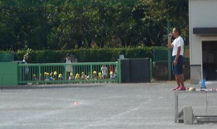 うわあ、今の約2倍の人数での朝会風景。先生の数
