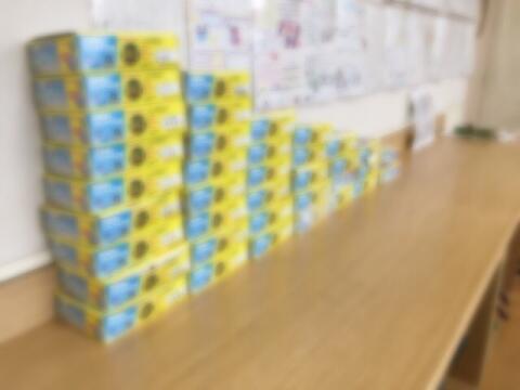 (段ボールの箱)がたくさん並びました。