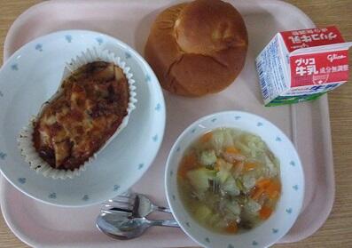 オニオンスープ ゴマパン 牛乳