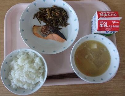 金曜日、今月最後の給食です。たけのこが春らしい