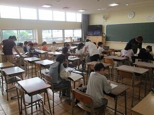 3月7日(金)2校時、本年度最後の避難訓練を実施しました。予告なしで行いました。地震の後、家庭科室から出火するというを想定の訓練でした。