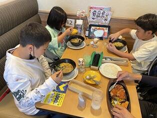 3月10日(月)本日の給食は「ベジぱくDAY」給食でした。今月の野菜は「うど」です。うど入りかき揚げ丼が提供されました。写真は2年生の給食の様子です。