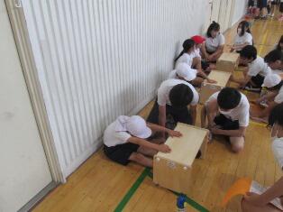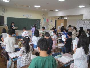 1校時、4年生と6年生のコラボミュージックの様子です。