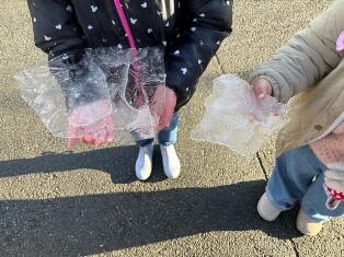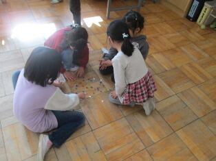 2組は図工「毛糸をとめよう」の学習で、展覧会に向けて作品を作っていました。