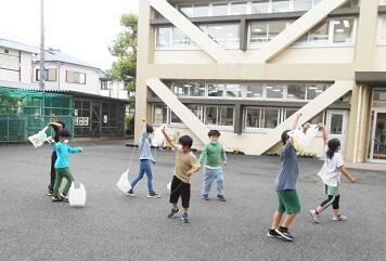 校庭で仲良く遊んでいた、新6年生。4月からは