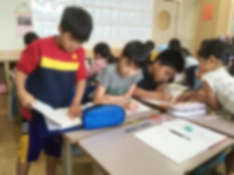 教科書の図や絵を活用して、友達と話し合いながら、課題を解決する子どももいます。
