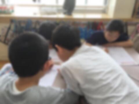 4年生の算数。助け合いながら問題を解決していました。
