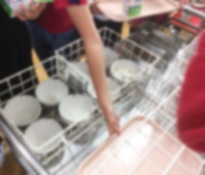 汚れてしまったトレーを、1枚1枚水洗いしています。主体的に取り組むその姿が美しいです。
