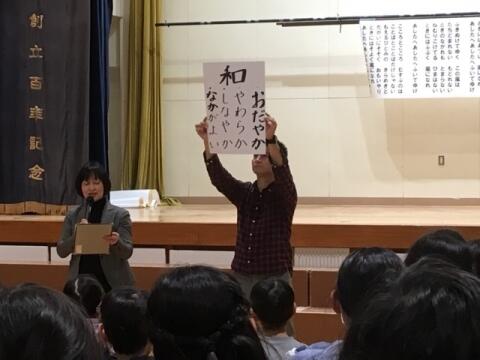 朝会での校長先生のお話。「和」という言葉には、いろいろな意味があるのですね。