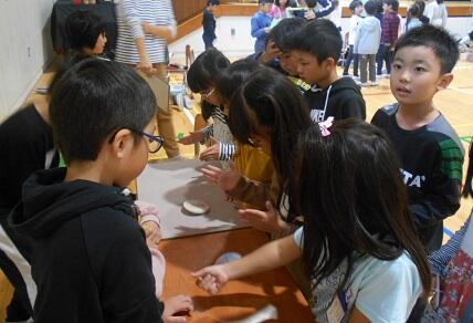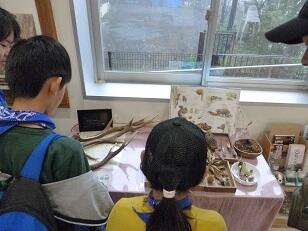 鹿の角、へびの抜け殻など展示物に「わ~!」