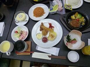 宿舎に着いて、夜ご飯。すごいボリューム。