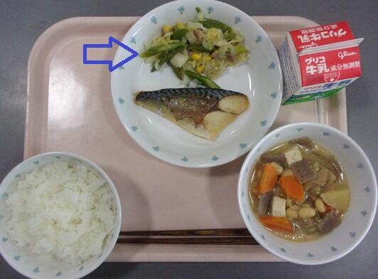 ごはん サバの塩焼き アスパラとキャベツの炒めもの