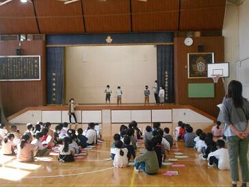 市内巡りの学習を中心に学習したことを、劇にして発表。