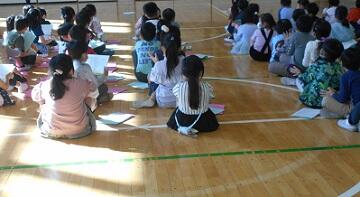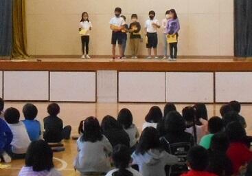 昔の遊びについて勉強したことを発表します。歌声にもご注目!