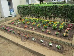 先週、商工会議所から花をいただきました。先日、環境整備委員会の児童が花を花壇に植えました。