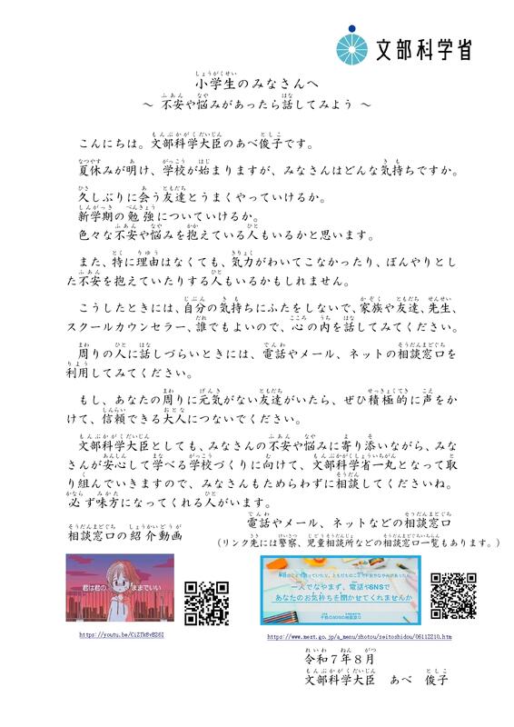 11/13 ・感染症による登校届はこちらからご確認ください。