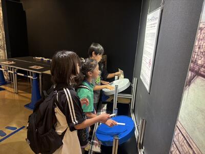 頑張って挑戦したら、「昔遊びの先生」たちに、シールをもらいました。