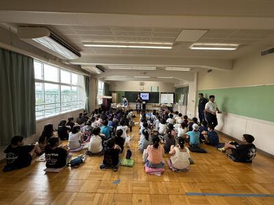 6年生は、10月下旬に道徳で「広村堤防の清掃ボランティア」の学習をし、公共のために積極的に行動する大切さを学びました。また、同時期に起きた、八丈島の台風の影響で現地の人たちがどのような状況の中で生活しているのかを伝えました。