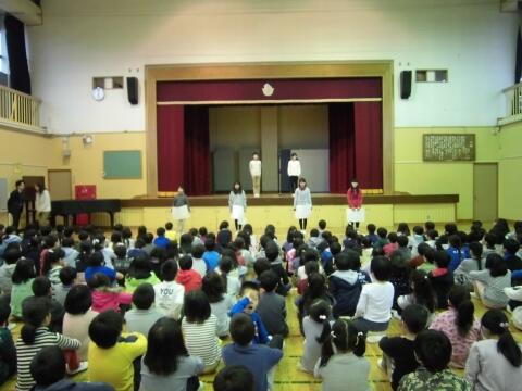 演奏は大成功!聞いていた児童たちから大きな拍手がわき起こりました。朝練等、大変に感じたこともあったかもしれませんが、やってきたことはしっかりと身についていますね。