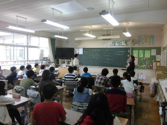 今日、六中の英語科の先生が6年生の外国語の授業のために来てくれました。6年生が六中の先生に一人ひとり英語で自己紹介をしました。しっかり自己紹介ができていたことをほめてくれました。