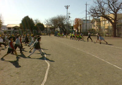 体育委員の「1,2,3,4」の掛け声に負けないくらいの「5,6,7,8」と元気な声が青空に響いていました。