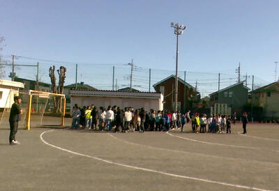 校庭では限られた場所の中で、20以上の班が工夫しながら遊んでいました。