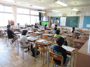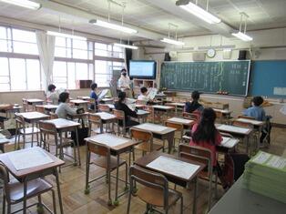 体育館に全員が入れないため、出し物をする学年だけが体育館に入り、あとは教室でリモートで見るようにして行いました。