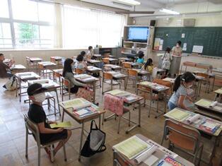 今日はさっそく夏休みの宿題やあゆみを提出したり、