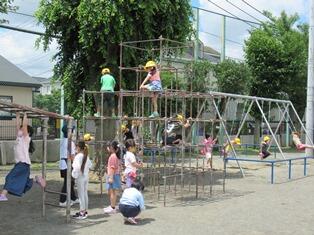 校庭ではだるまさんがころんだや、ドッジボール、しっぽとりなどをして遊んでいました。
