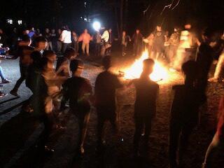 次に松明伝承保存会会長の高橋さんから、松明回しの歴史についてお話を聞きました。