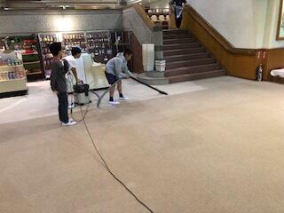 ほうきの使い方、ちりとりの使い方などを見本を見ながら