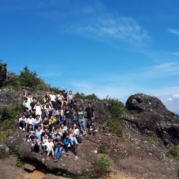 3日目霧がかかった中の朝の会です。みんなよく寝れたようです。