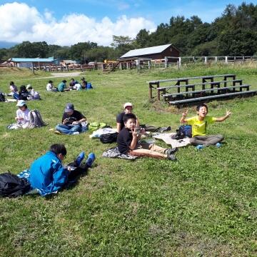 2日目の朝を迎えました。みんなよく眠れたようで、朝早く目覚めたようです。みんな元気です。少々元気すぎですが。朝会の後朝食を食べ、ハイキングへ出発します。