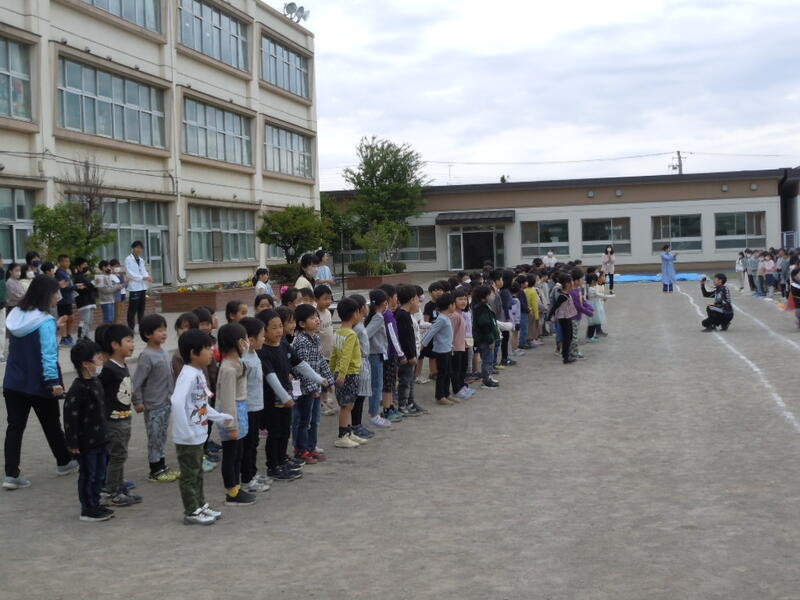 1年生が上級生と初めて校庭で対面しました。歓迎の西砂クイズで盛り上がり、これからは、1年生から6年生みんながなかよく様々な活動に取り組んでいきます。上級生のみなさん1年生のことをお願いします。