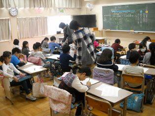 2月27日(木)学校給食課から共同調理場の栄養士や職員が給食の視察に訪れました。写真は3年2組と4年1組の様子です。