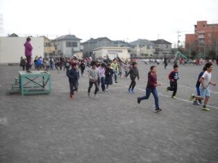 2月27日(木)3校時、1年生の授業の様子です。1・2組とも体育でした。1組は走の運動遊びに取り組んでいました。2組は鉄棒遊びの学習に取り組んでいました。