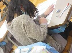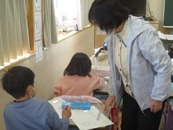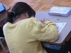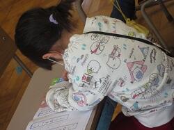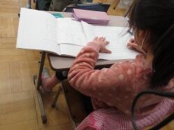 「ほ」の学習のほかに、先生にみてもらったプリントの「直し」を行い、「おばさん」