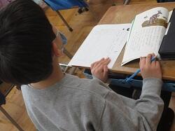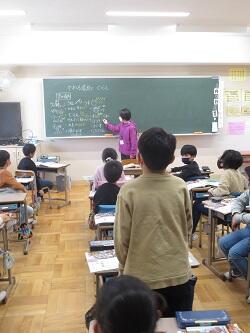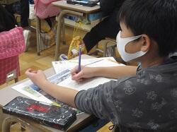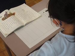 2年2組の4時間目は国語です。今日は漢字の練習です。