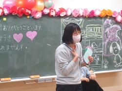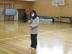 1年生に、「これから、みんなでいっしょに楽しい思い出をいっぱい作りましょう」と