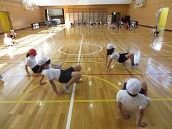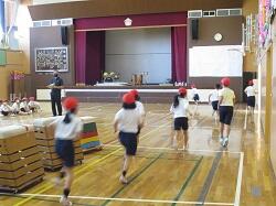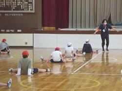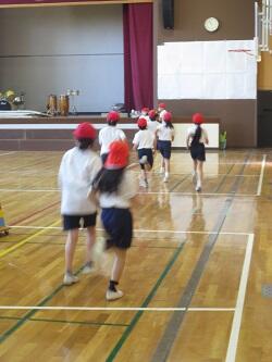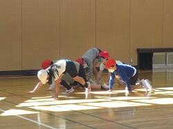 全員走り切ったら、必ず座るところが大事です。全チーム優勝です!!