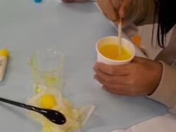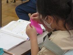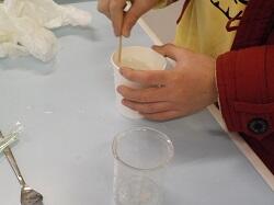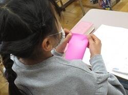 6年生や先生が、牛乳パックの処分の仕方などを教えてくれました。
