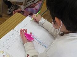 物差しを使って、5㎝、7㎝、10㎝、4㎝3㎜、6㎝9㎜の直線をひきます。