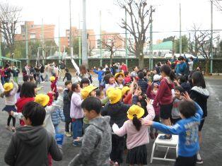 3月18日(月)3校時、2年生の授業の様子です。1・2組とも体育でした。1組はボールけりゲームに取り組んでいました。2組はフラフープを使った運動に取り組んでいました。