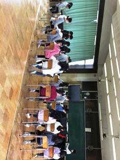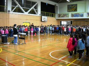 4月15日(金)、朝の時間に1年生を迎える会がありました。代表委員の歓迎の言葉に続き2年生から6年生は歓迎の歌を歌いました。お礼に1年生も歌を歌いました。