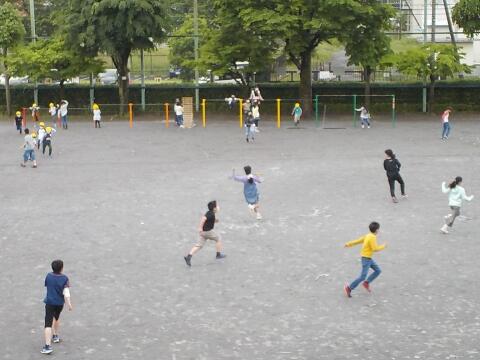 低学年は、1年生は校舎側で踊り、2年生は鉄棒側で踊る予定です。
