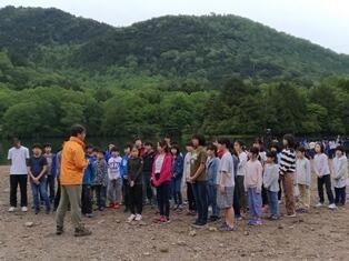 7月2日(月)全校朝会がありました。校長が仮設校舎への引っ越しについての話をしました。