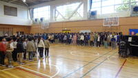 音楽で、「ゆかいに歩けば」を歌いました。(4年生)